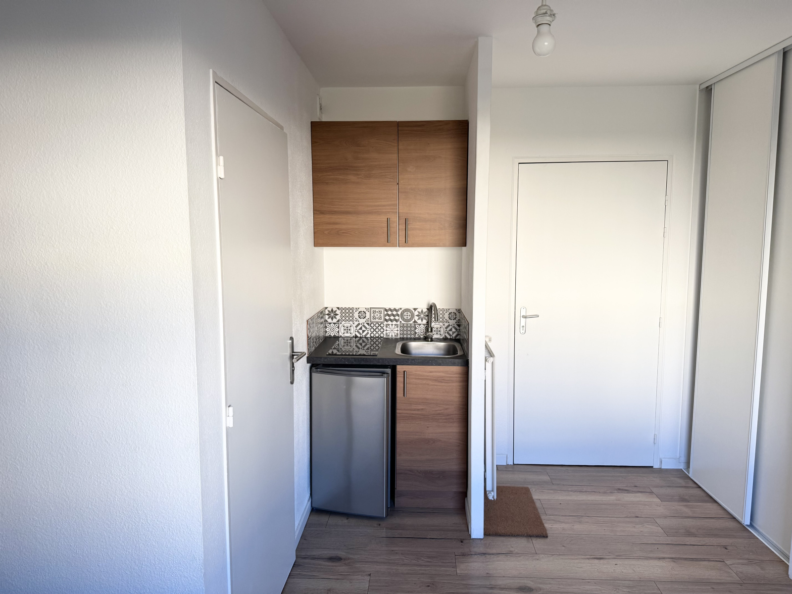 Descriptif du bien : Ce studio comprend une pièce de vie lumineuse, une cuisine aménagée, du rangement dans l'entrée, et une salle d'eau avec WC, il est totalement rénové et dispose d'un jardin privatif